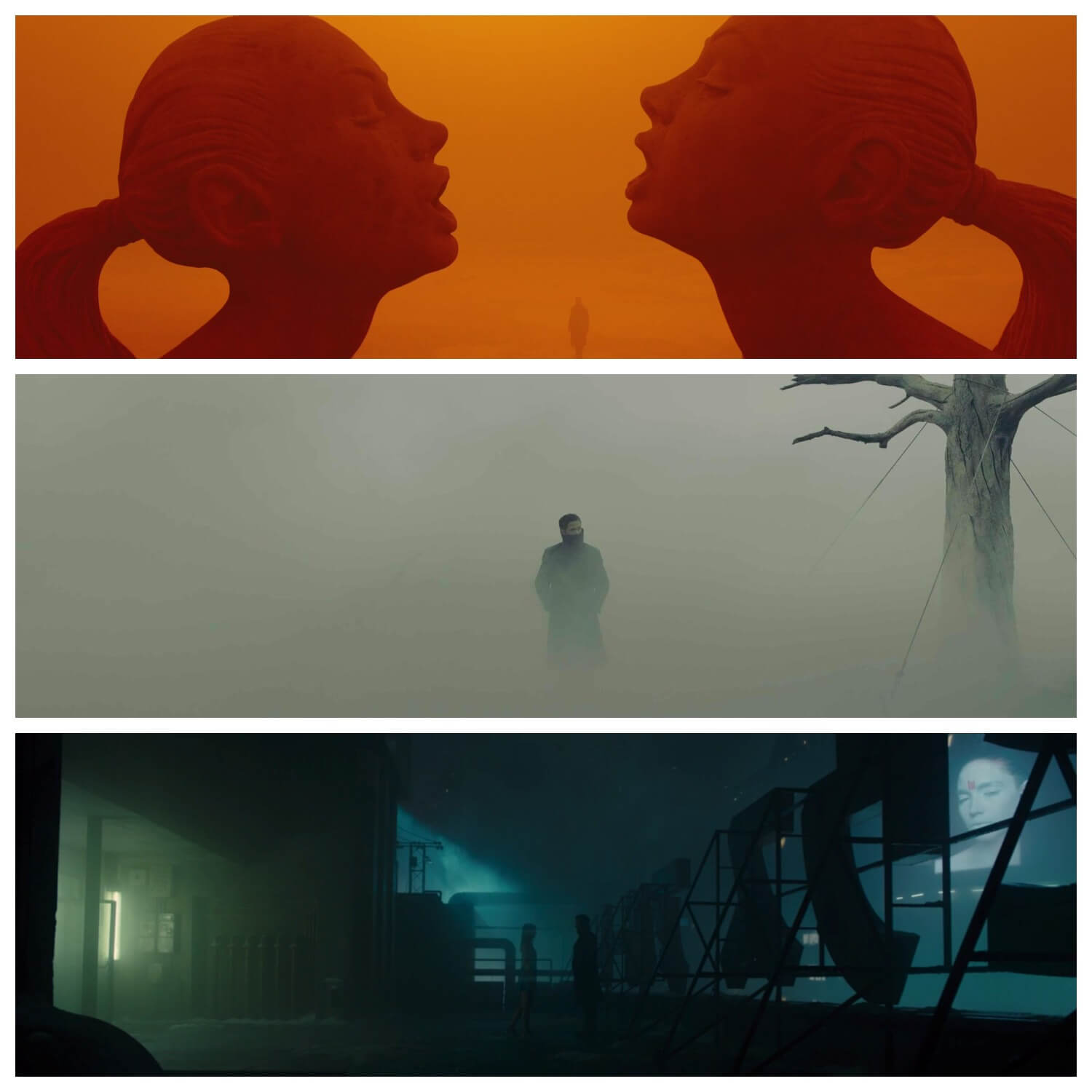 The fog also gives a hazy, dream-like feel to the film, a feel which the first Blade Runner established so masterfully. Cityscapes seemingly go on forever. Characters, objects, entire buildings fade in and out of view, like tears in rain.
