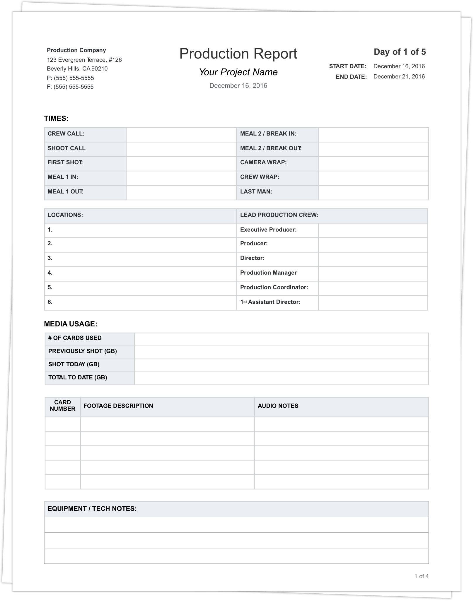 This production report template, also known as a "DPR" is fully customizable and can be expanded to fit any production.